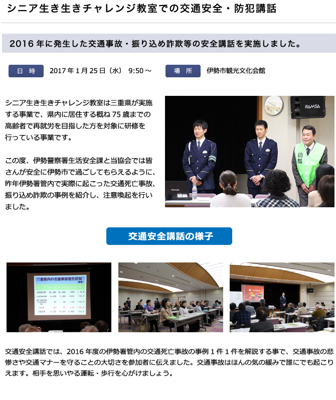 シニア生き生きチャレンジ教室での交通安全・防犯講話