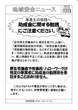 <事業主の皆様へ>助成金に関する勧誘にご注意ください。